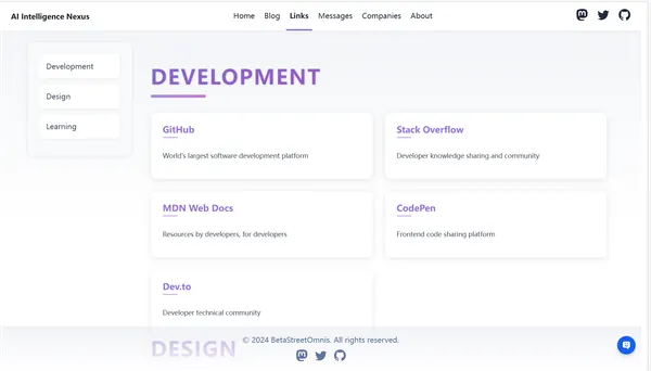 AstroNavigator is an Astro-powered platform for efficient information discovery, featuring categorized blogs, company profiles, message updates, and curated resource links.